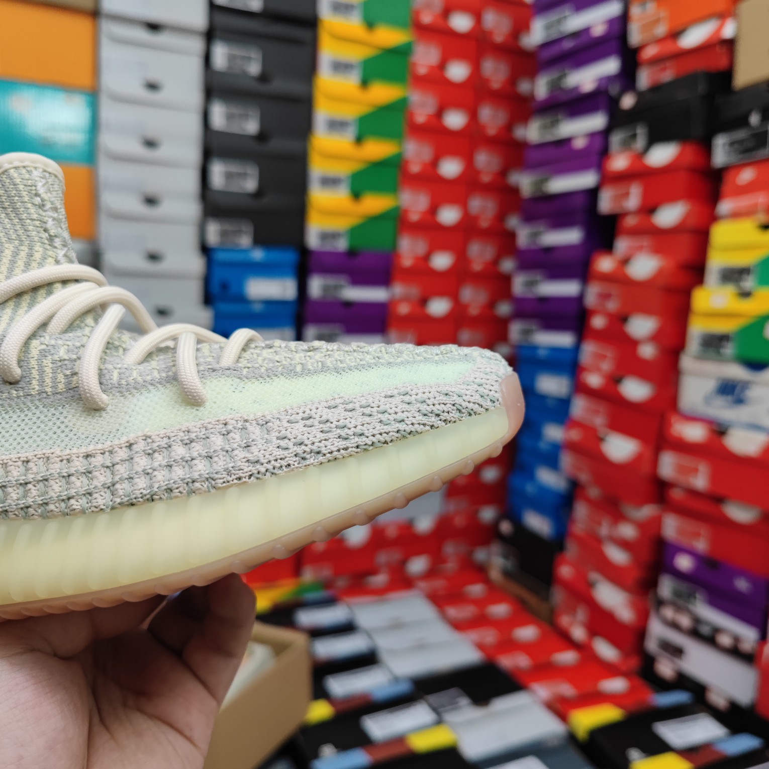 椰子350天花板在此!市场最认可的版本没有之一! 全套原鞋数据开模完美打造 辰元飞织鱼丝网原厂面 非进口机台 大底原厂半透明RB巴斯夫满钉大底 原厂东莞百宏3M反光鞋带 质感一致 原厂鑫成新粉原鞋垫 LOGO胶浆印花 钛金针与高士马克线针车精工打造 一切遵循原厂指令单采购同源原材 采购全套原厂进口材料 原纸版 原楦头 一切同源公司货 大几率过验 混卖无压力 YEEZY BOOST 350 V2“柠檬拼接” 货号:FW3042 尺码:36 36.5 37 38 38.5 39 39 40 40.5 41 42 42.5 43 44 44.5 45 46 47 48